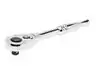 Use a Phillips screwdriver to release the tension in the right hinge by pressing the inner portion of the hinge until it releases, then allowing it to turn clockwise until it comes to rest.