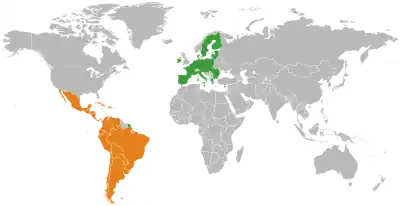- ↑ La definición más extendida de América Latina incluye a todos los países de habla española, portuguesa y se añaden los territorios de habla francesa como Haiti, Matrinica y la Guayana Francesa. Sin embargo, la definición más correcta y menos usada añade también a Quebec en Canadá por ser el francés su idioma oficial.