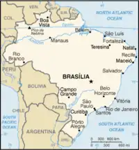 Brasil, oficialmente República Federativa del Brasil (en portugués, República Federativa do Brasil), es un país de América del Sur que comprende la mitad oriental del subcontinente y algunos grupos de pequeñas islas en el océano Atlántico.