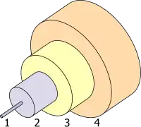 Una fibra óptica es una fibra delgada de vidrio o plástico que puede transportar luz de un extremo al otro.[1]