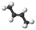 Alkenes such as ethene (shown to the right) have a carbon-carbon double bond. In such a double bond, there is significant electron density above and below the plane of the bond. Rotation around the bond is greatly restricted by a large energy barrier. For rotation to occur, groups attached to one of the double-bonded carbons would have to temporarily occupy this high electron density region, resulting in very high repulsion between the electrons in the group and the electrons in the double bond.
