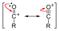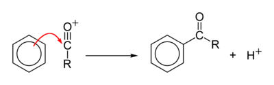 The electrophile at the centre of Friedel-Crafts acylation is the acylium ion, [RCO]+. Its carbon atom carries a large partial positive charge and is highly electrophilic, allowing it to react with very unreactive arenes such as benzene. Bonding in the acylium ion is best described as a resonance hybrid of two canonical forms: