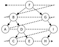 When doing this by hand, you can just draw a line to the right of the nodes and drawing a line around the nodes as shown in the image to the right. This method works for each traversal, it just depends where you draw the lines.