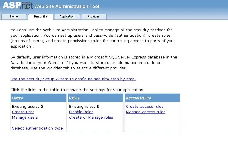 Roles can be created in .NET 2.0 using the ASP.NET Website Administration tool. This tool is available in the Solution Explorer toolbar.
