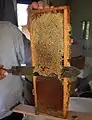 A honey extractor is a mechanical device used in the honey extraction. A honey extractor extracts the honey from the honey comb without destroying the comb. Extractors work by centrifugal force. A drum or container holds a frame basket which spins, flinging the honey out. With this method the wax comb stays intact within the frame and can be reused by the bees.