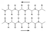 Primary structure is practically a synonym of the amino acid sequence. It can also contain informations on amino acids linked by peptide bonds. Primary structure is typically written as a string of three letter sequences, each representing an amino acid. Peptides and proteins must have the correct sequence of amino acids.