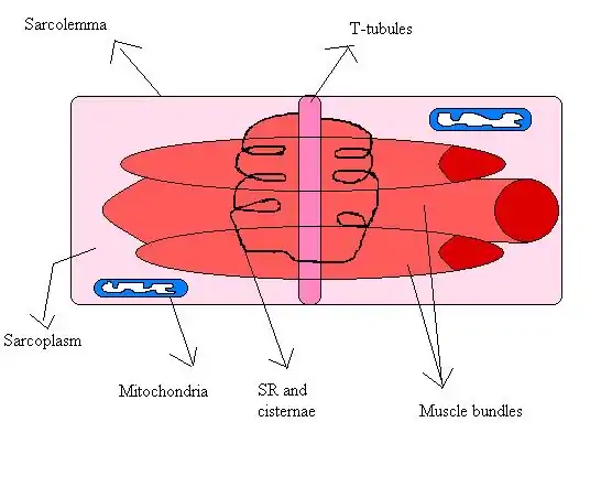 3) Sarcoplasmic reticulum (SR): the internal membrane system of the cell. It is connected to the T-tubules. When AP moves along the sarcolemma, it enters the T-tubules and sets off a general depolarization of SR.