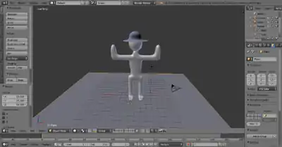 If you've done everything correctly, your mesh should move when you move the bones! If this doesn't happen, scale the bones up so that they fit better in the mesh, and scale up the bones until they do what you want (read comment in the parenting section above on adjusting the bones envelopes if you do not get an effect while moving/rotating the bones). With the bones now, you can put Block Dude into a lot of different positions without moving individual vertices.