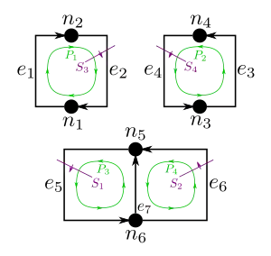 Lastly, for any edge , the counter-clockwise boundary of the surface is the path: . This path is a square that passes through nodes