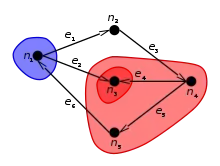 A "directed graph" consists of a set of nodes/vertices and a set of directed edges. For each edge , has an origin node that is the beginning of edge , and a terminal node that is the end of edge . It will also be allowed that edges can form loops () and that multiple edges can have both the same beginning and end ( and ), though this will be irrelevant for the cases that will be considered.