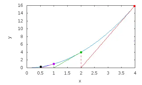 If our intuition was correct and is in fact a better approximation for the root of , then our logic should apply equally well at . We could look to the place where the tangent line at is zero. We call , following the algebra above we arrive at the formula