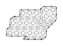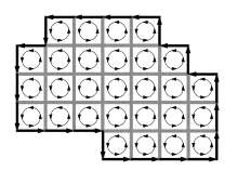 Quantifying "circulation density" is best introduced in 2 dimensions. Given a large counter-clockwise oriented loop that is confined to 2 dimensions, can be decomposed into a family of infinitesimal loops as shown on the right. Boundaries that are common to adjacent loops cancel each other out due to their opposite orientations, so the total circulation around is the sum of the circulations around each infinitesimal loop.