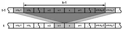 • the neighborhood is formed from the left overlap and the remaining right cell