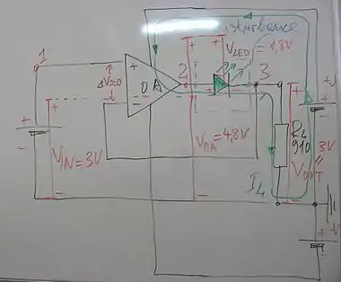 What can act as a varying voltage source in our electronic circuit? What can "help" the imperfect diode by adding so much voltage to the input voltage as it loses across the diode? At last Lab 3 we were using transistors for such a purpose; let's now, for the sake of change, use an op-amp...