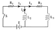 In the network shown, determine the character of the currents , , and assuming that each current is zero when the switch is closed.