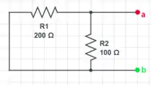Suppose we are going to connect a DC Voltage power supply to points a and b. The goal is to characterize the insides of the box that contains a DC voltage source and a couple of resistors. Do this by: