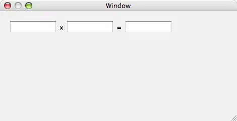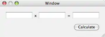 Now your application needs a way to activate the multiplication. Choose the "Cocoa-Controls" tab of the interface elements palette and drag a button into your applications window. place it below the right textfield. Double click the button and change its text to read "Calculate". Since this is the last item we will be adding to our interface you might like to also resize the window so that it doesn't have so much extra space. Your window should now look something like the following.