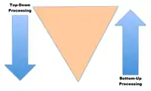 Top-down processing: An approach to information processing that involves using general knowledge to fill in what is known and working down towards smaller details.