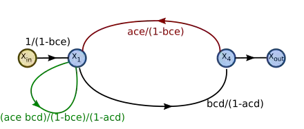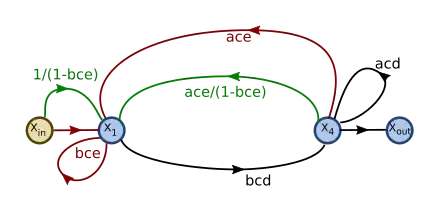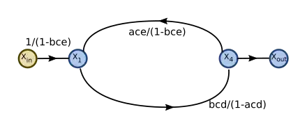 's outflow is then eliminated: is connected directly to using the product of the gains from the two edges replaced.