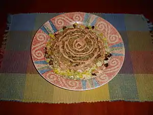 La mazorca desgranada is typical northern coast fast food recipe. Is is made of sweet corn, beef, cheese, crushed potato chips and tartar sauce.