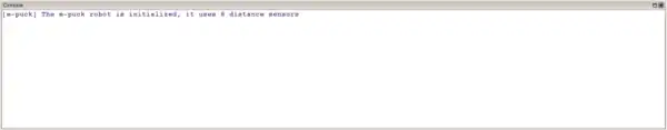 You should observe a small board, on which there is just one obstacle. To test the IR sensors, you can move either the e-puck or the obstacle. Please note also that the window depicted in the figure. This window is called the log window. It displays text. Two entities can write in this window: either a robot controller or Webots.