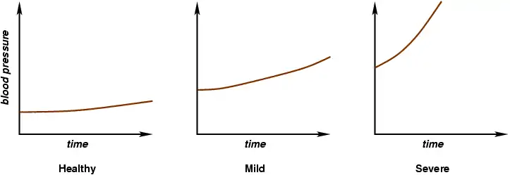 Figure 10: The blood pressure response curve for three individuals with varying degrees of a depression.