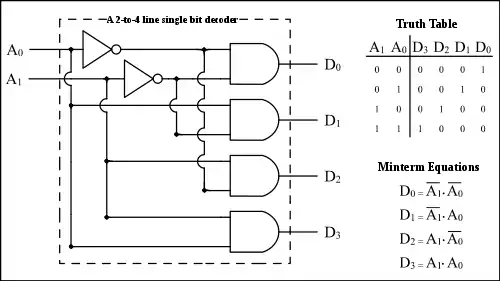 Of course, the above discussion is about what is known as a Demultiplexer, where 1 line is switched to N lines. The article is misleading because while it shows that one of the outputs goes high, it does not pass a signal through, so it really isn't even about a Demultiplexer, but rather a 2 to 4 line decoder. A Multiplexor takes N lines and selects one to be the output. See Multiplexer on multiple sites, including Wikepedia. It can be confusing when dealing with an Analog Switch, which is a CMOS based device that is inherently bidirectional, and there are Analog Multiplexers/Demultiplexers. -- Steve KD4TTC