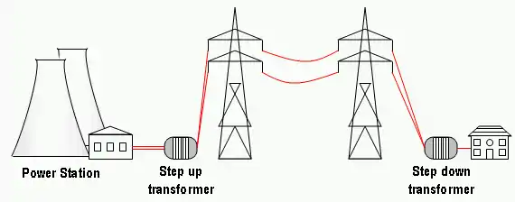 The most obvious application of the electrical transformer is in power distribution. Recall that in an electrical circuit, . Therefore, the power consumed by a circuit element is proportional to the square of the current flowing through it. In a transmission line, this is important because the line itself has some characteristic impedance. In order to reduce power losses in the transmission line, it is desirable to transmit the least amount of current possible. For a given amount of power, the best way to do this is by increasing the voltage.