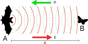 Echolocation is a form of acoustics that uses active sonar to locate objects. Many animals, such as bats and dolphins, use this method to hunt, to avoid predators, and to navigate by emitting sounds and then analyzing the reflected waves. Animals with the ability of echolocation rely on multiple receivers to allow a better perception of the objects’ distance and direction. By noting a difference in sound level and the delay in arrival time of the reflected sound, the animal determines the location of the object, as well as its size, its density, and other features. Humans with visual disabilities are also capable of applying biosonar to facilitate their navigation. This page will focus mainly on how echolocation works in bats and dolphins.
