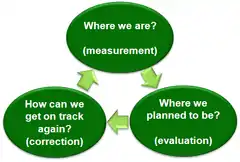 Evaluation is based on monitoring but adds a "judgment". Is what happening supposed to happen? What we are doing is it the right thing? What we have done, was it done right? Do the actions follow the plan? Are the employees doing their tasks as they were expected to do? Are the tasks managers working efficiently? Is the team working efficaciously? Was the plan well conceived? Are there new factors taking place that require modifications in the plan? Are the project deliverable leading to the expected project outputs? Are the project outputs leading to the expected project objectives? What are the outcomes and the impacts of the project? Is the project contributing as intended to the wider programme to which it was a component? Are we learning from the experiences?