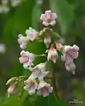 | Although a number of extinct Eucommia species were native to North America, the only living species, Eucommia ulmoides, is native to central China but has been planted worldwide. It is known for being a very cold-tolerant rubber-producing tree. It has been reported as naturalized in Indiana and Ohio, but not in New York State.[1] |