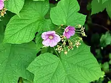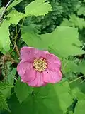 |  L. 1753. Rubus odoratus L. 1892. R. odoratus var. columbianus Millsp. 1903. Rubacer odoratum Rydb. 1903. Rubacer columbianum Rydb. 1906. Bossekia odorata Greene 1912. Bossekia columbiana A.Heller | Purple-flowering raspberry, Purple-flowered raspberry, Virginia raspberry, Thimbleberry Ronce odorante, Framboisier sauvage, Calottes | Native, C:7, Secure Perennial, Subshrub, Sun - shade |  |  | NYFA-5 USDA-NN NPT Can ARS ITIS FNA Trop. NSE BNA LBJ Images, wsp |