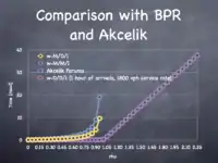 | Probability of spending more than time t in the queue, given the queue is not empty | |