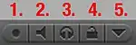 1. This first button indicates that if you press record you will record for this track. Therefore, when you select a track this button turns on for that track.