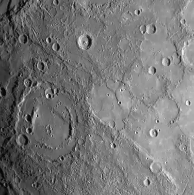 Mercury, shown in Figure 25.7, is the planet closest to the Sun. Mercury is the smallest planet, and it has no moon. As Figure 25.7 shows, the surface of Mercury is covered with craters, like Earth's moon. The presence of impact craters that are so old means that Mercury hasn't changed much geologically for billions of years and, with only a trace of an atmosphere, has no weather to wear down the ancient craters.