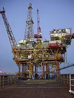 The most valuable non-living resources found in the ocean are oil and natural gas. Of course, these resources are below the seafloor, and require drilling to reach. Oil platforms can hosts dozens of oil wells that are drilled in places where the ocean is sometimes 2,000 meters deep (Figure 14.25). Working on oil platforms is dangerous for workers, who are exposed to harsh ocean conditions and gas explosions. Oil rigs also pose a threat to the ocean ecosystem, as a result of oil leaks and disruption of the natural environment.