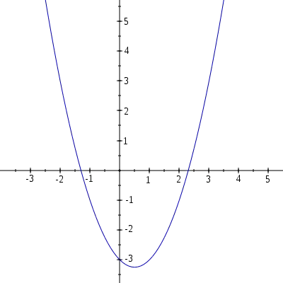 - (c) Vertex: (.5, -3.25); x-intercepts: -1.3, 2.3