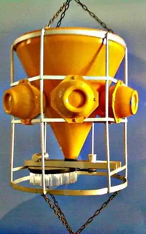 Fundamentally, it is a technologically sophisticated bucket. One aspect of its sophistication is that it has a whole set of collection bottles at the base which successively rotate into the collection position at fixed intervals. This allows geologists to measure seasonal variations in the quantity and composition of sediments.
