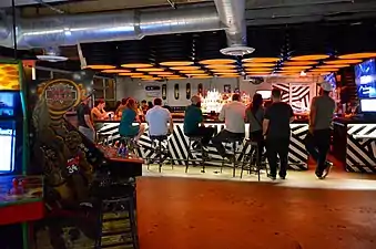 To a limited extent, Arcades saw a small revival during this time.[59] In the 2000's arcades had struggled to compete with increasingly better home gaming experiences. Recognizing that Arcades could no longer rely on the technical dominance they once did, arcades reinvented themselves. Often this meant appealing to nostalgic adults and young adults looking for a new experience with barcades.[60] Others focused on special experiences that couldn't be had at home without spending significant amounts of money, such as virtual reality, to mixed success.[61][62]