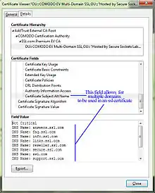 Box showing digital certificates