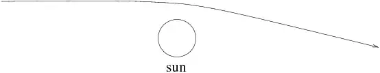 Note that here, gravitational interaction is contained in the metrics. So the equation for the "free" particle above describes the evolution of a particle undergoing the gravitational interaction. General relativity explain have larges masses can deviate light rays (see figure figlightrayd)