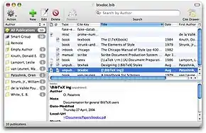 Bibliography files (*.bib) are most easily edited and modified using a management system. These graphical user interfaces all feature a database form, where information is entered for each reference item, and the resulting text file can be used directly by BibTeX.