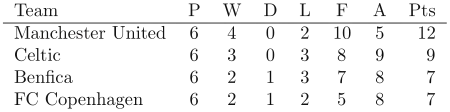 The number of columns does not need to be specified as it is inferred by looking at the number of arguments provided. It is also possible to add vertical lines between the columns here. The following symbols are available to describe the table columns (some of them require that the package array has been loaded):
