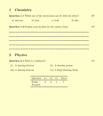 - The solution is given in the solution environment. It appears only if \printanswers or answers as an option of the \documentclass are specified in the preamble.