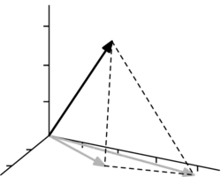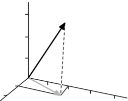The vector lies on the dotted line connecting the black vector to the gray one, that is, it is orthogonal to the -plane.