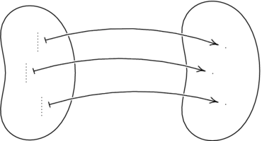 If the codomain equals the range of then we say that the function is onto (or surjective). A function has a right inverse if and only if it is onto (this is not hard to check). If no two arguments share an image, if implies that , then the function is one-to-one (or injective). A function has a left inverse if and only if it is one-to-one (this is also not hard to check).