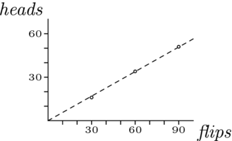 For instance, suppose that we have a coin to use in flipping. This coin has some proportion of heads to total flips, determined by how it is physically constructed, and we want to know if is near . We can get experimental data by flipping it many times. This is the result a penny experiment, including some intermediate numbers.