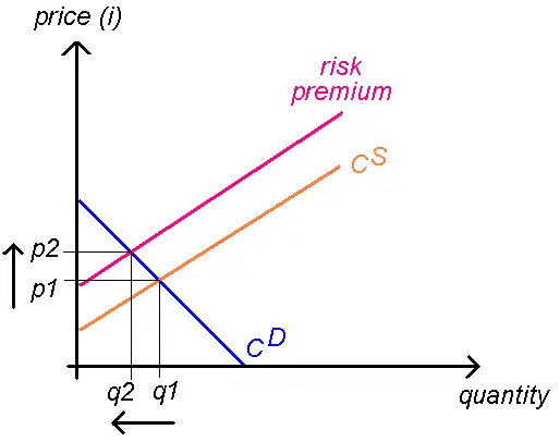 In times of uncertainty regarding the monetary development capital suppliers often add a risk premium to the interest they would like to charge. The risk premium is supposed to compensate for possible inflationary developments that could potentially disadvantage the capital suppliers. That makes credits more expensive and in turn fewer credits are demanded. Due to the risk premium the price for credits is never in its natural equilibrium and consequently the market efficiency decreases.