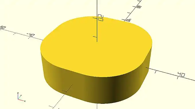 | short_sides_only_rounded_box.scad use <MCAD/boxes.scad> $fa=1; $fs=0.4; roundedBox(size=[50,50,15],radius=20,sidesonly=true); |