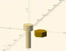 use <MCAD/nuts_and_bolts.scad>; include <MCAD/units.scad>; $fn=50; //M3 is an alias for 3 . It is defined in units.scad boltHole(M3, length=10); %boltHole(M3, length=10, tolerance=0.3); translate([-7, 0, 0]) nutHole(M3, tolerance=0.3);